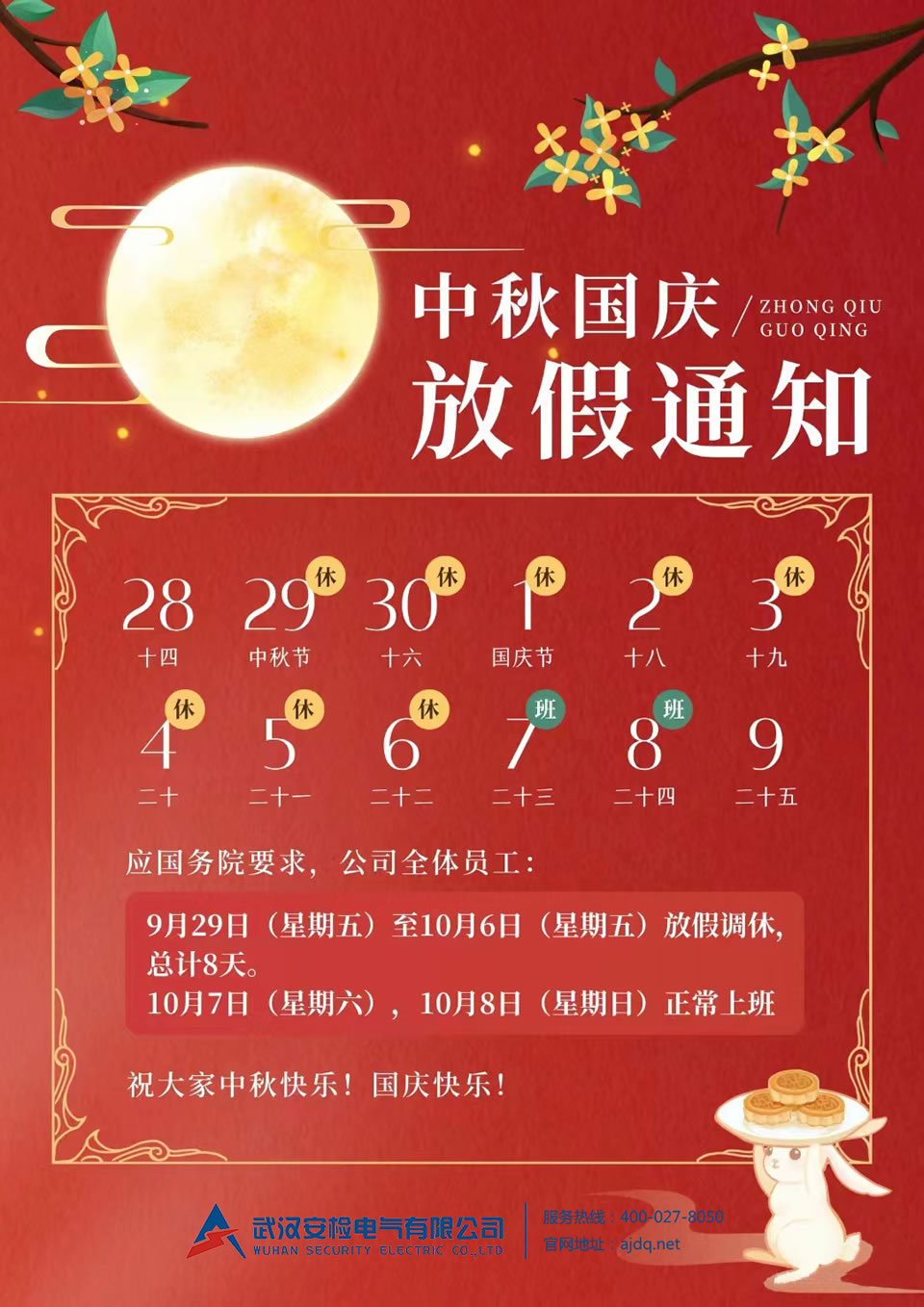 根據(jù)國務院辦公廳通知精神,現(xiàn)將2023年中秋節(jié)、國慶節(jié)放假安排通知如下: